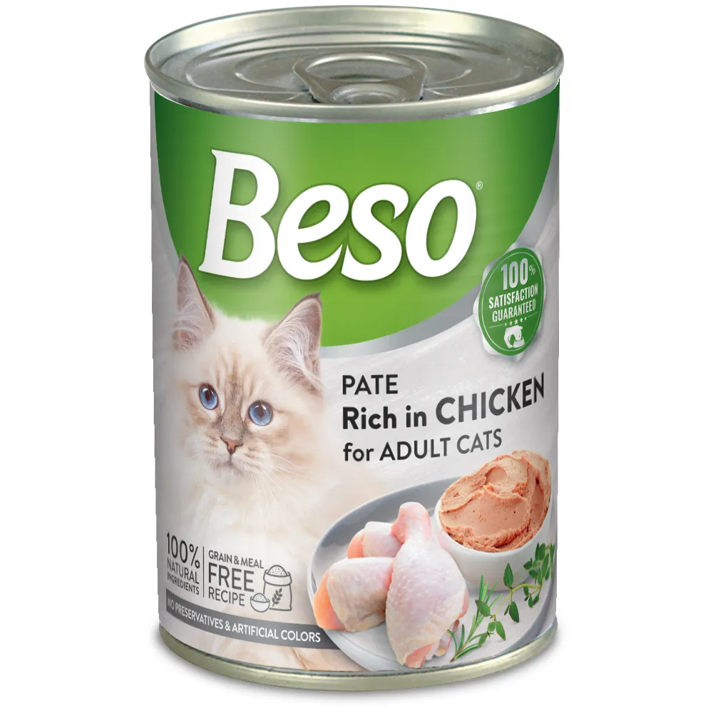 All Beso Pâté flavors are carefully crafted with precise steps and made using 100% premium natural meats — not by-products or meat substitutes. This makes the cans rich in authentic meat flavor and aroma, which remain appetizing even 3 days after opening, attracting your pet’s senses every time.